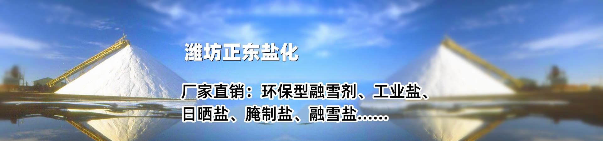 濰坊正東鹽化有限公司,地處中國的海洋化工產(chǎn)業(yè)基地——山東濰坊濱海經(jīng)濟(jì)開發(fā)區(qū),東臨濰坊港、南臨榮烏高速和濟(jì)青高速、地理位置優(yōu)越、交通通訊發(fā)達(dá)、原材料供應(yīng)充足,配套設(shè)施完備。 我公司是以生產(chǎn)工業(yè)鹽,環(huán)保型融雪鹽、凍結(jié)型融雪鹽等產(chǎn)品。 我公司擁有三大制鹽場區(qū),經(jīng)營多種海鹽產(chǎn)品,自產(chǎn)自銷,共占地48000公畝,年產(chǎn)各種規(guī)格型號的鹽系列產(chǎn)品12萬噸。公司以“誠信、務(wù)實、專業(yè)、互利“為服務(wù)理念,以“客戶至上,合作共贏”為服務(wù)宗旨,“價格低、周期短、質(zhì)量高、服務(wù)優(yōu)”是正東鹽化對客戶的承諾!望有識之士聯(lián)系,共同進(jìn)步,同創(chuàng)輝煌。為客戶降低成本,本公司與省內(nèi)外多家用鹽企業(yè)有良好的合作。